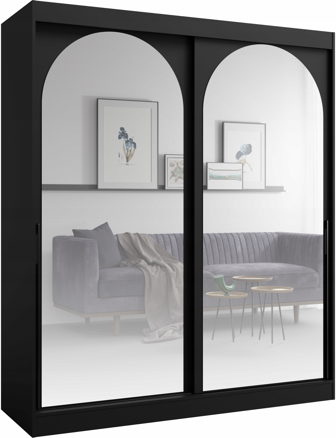 Szafa posiada dwa przesuwne fronty. Wewnątrz po lewej stronie znajdują się półki a po prawej stronie drążek na wieszaki. Doskonale sprawdzi się w salonie, ale również w sypialni, przedpokoju czy pokoju młodzieżowym.