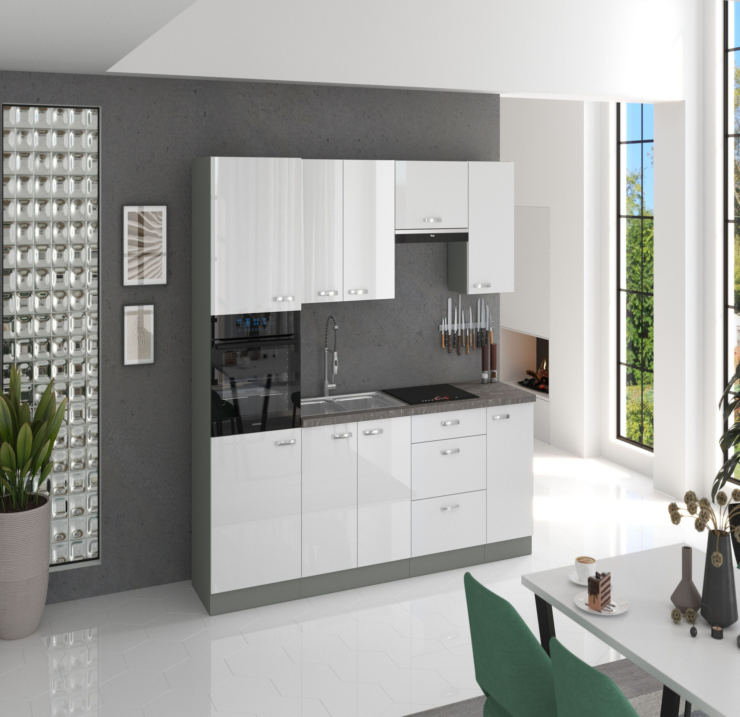 Szafka kuchenna dolna 80 D 2F BB BIAŁY POŁYSK, SZARY PLATYNOWY, Meble Kuchenne BIANCA