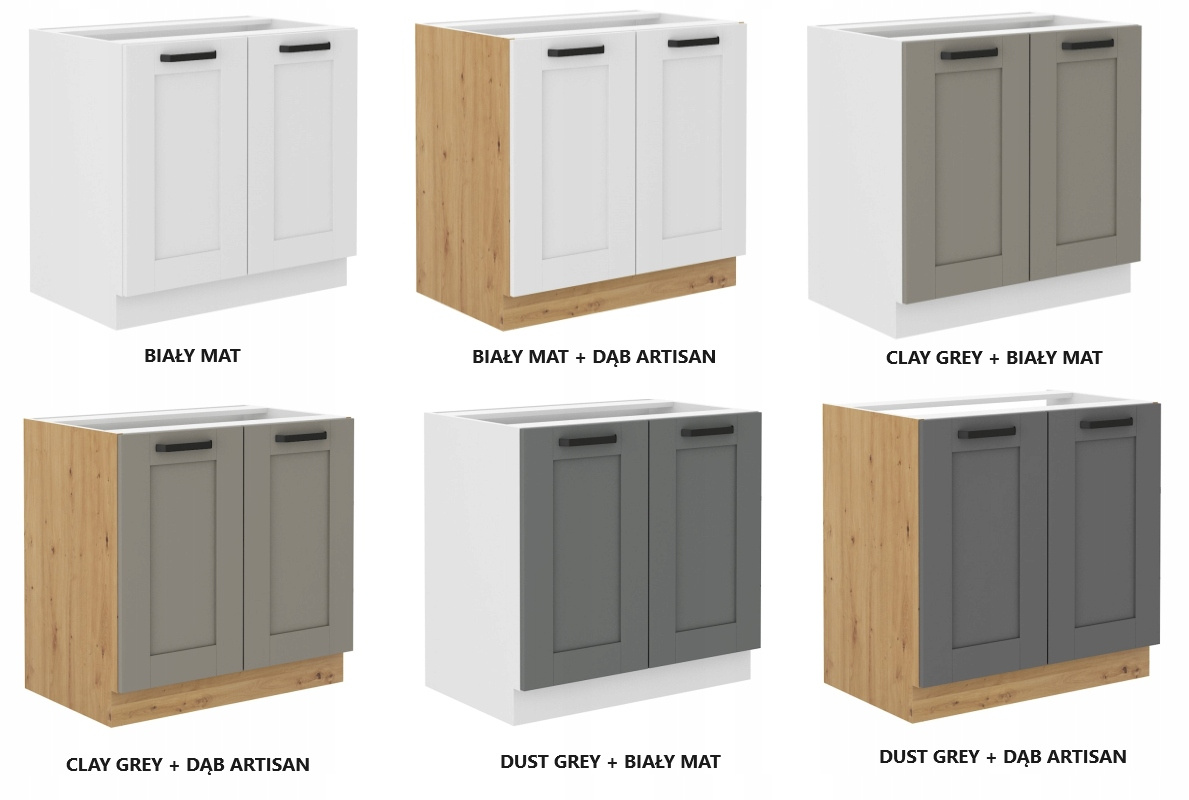 - aukcja dotyczy dolnej szafki LUNA 80 D 2F BB w kolorze: dust grey/dąb artisan