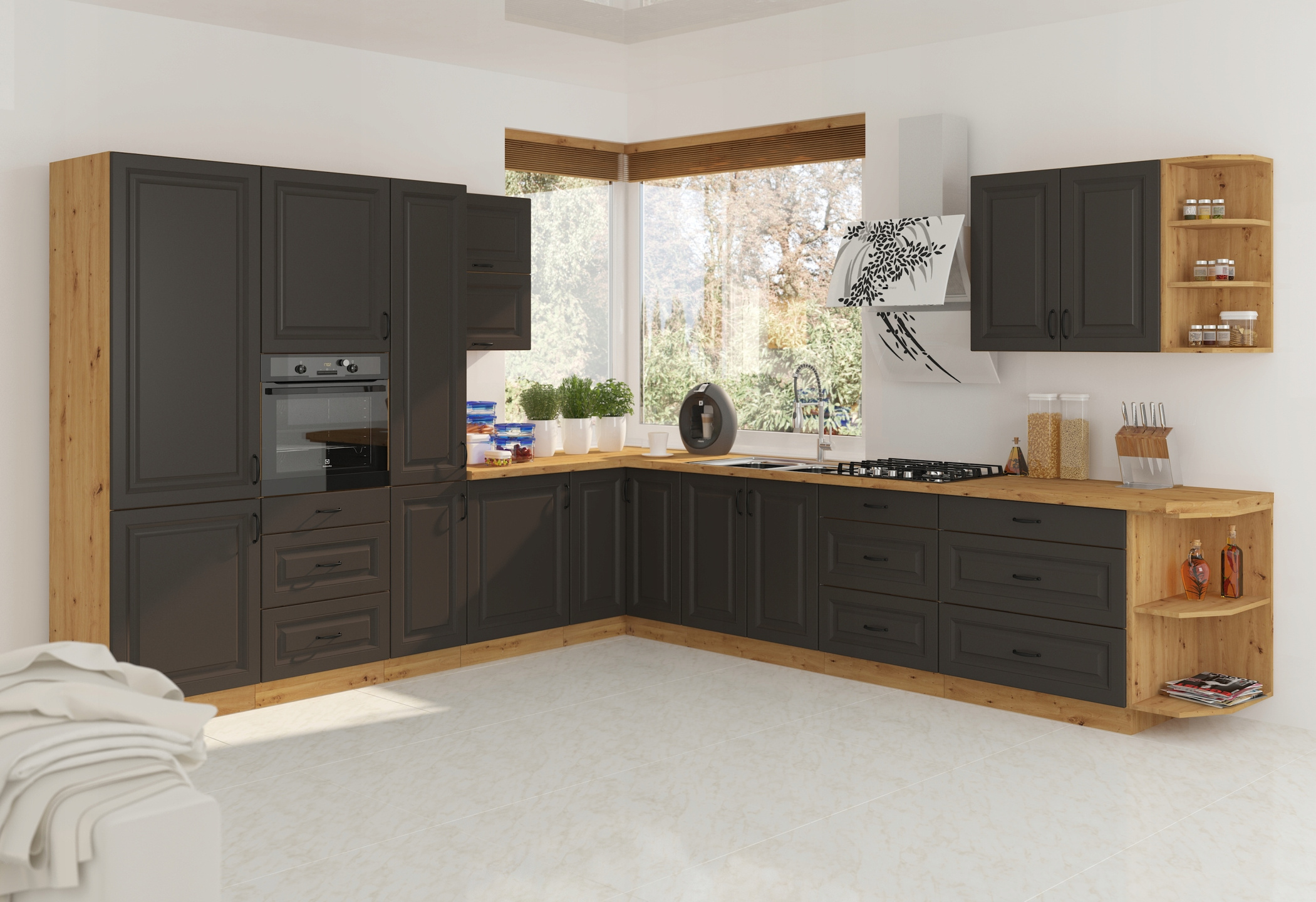 • płyta MDF o grubości 16mm w kolorze grafit matowy, frez STILO
