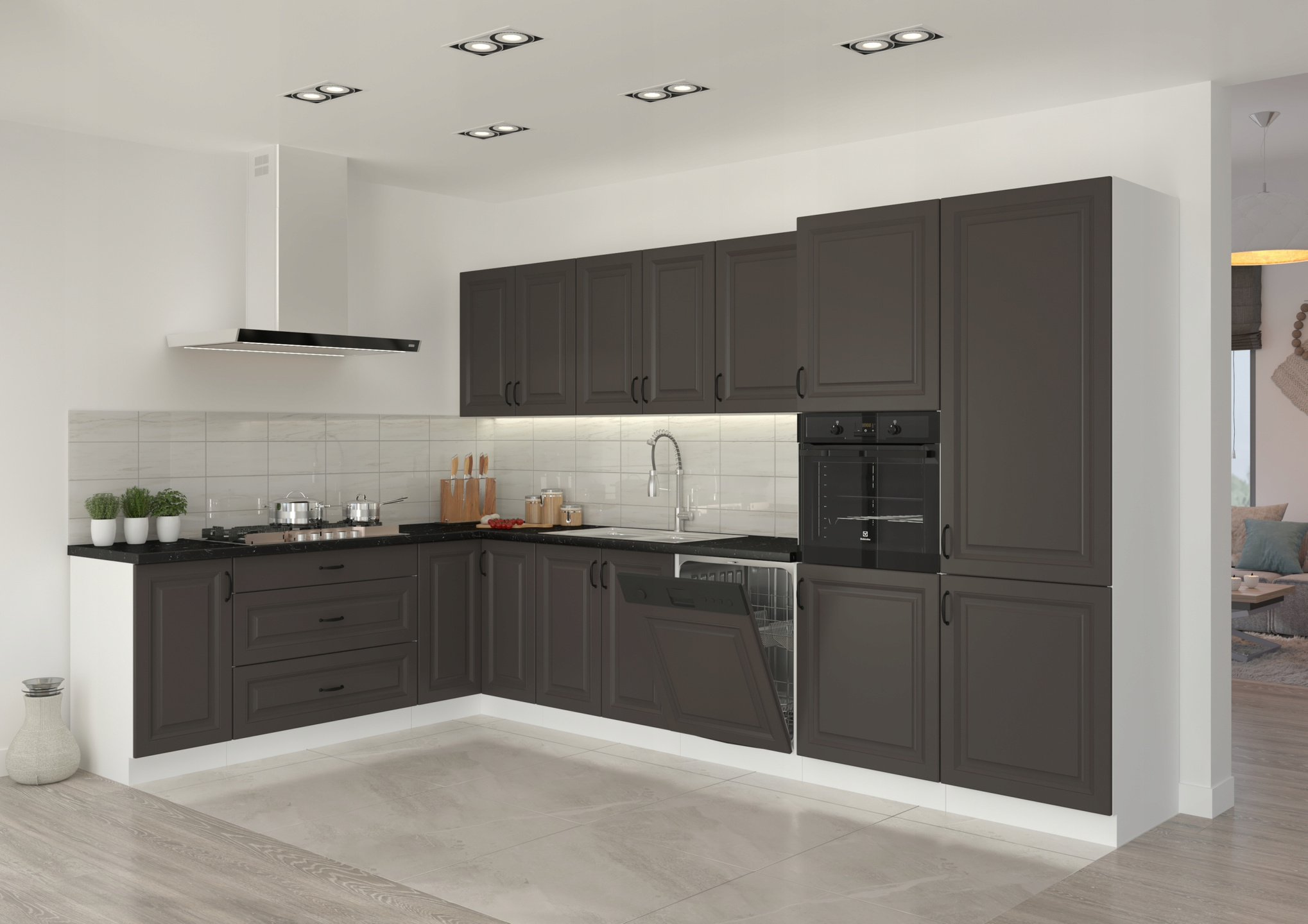 - płyta MDF o grubości 16mm w kolorze grafit matowy, frez STILO