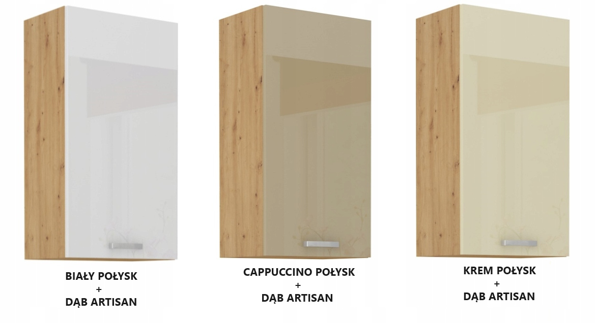 - aukcja dotyczy górnej szafki ARTISAN 45 G-90 1F w kolorze: krem połysk/dąb artisan