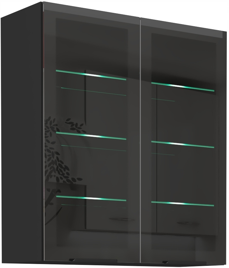 - szafka posiada dwa przeszklone fronty i trzy półki