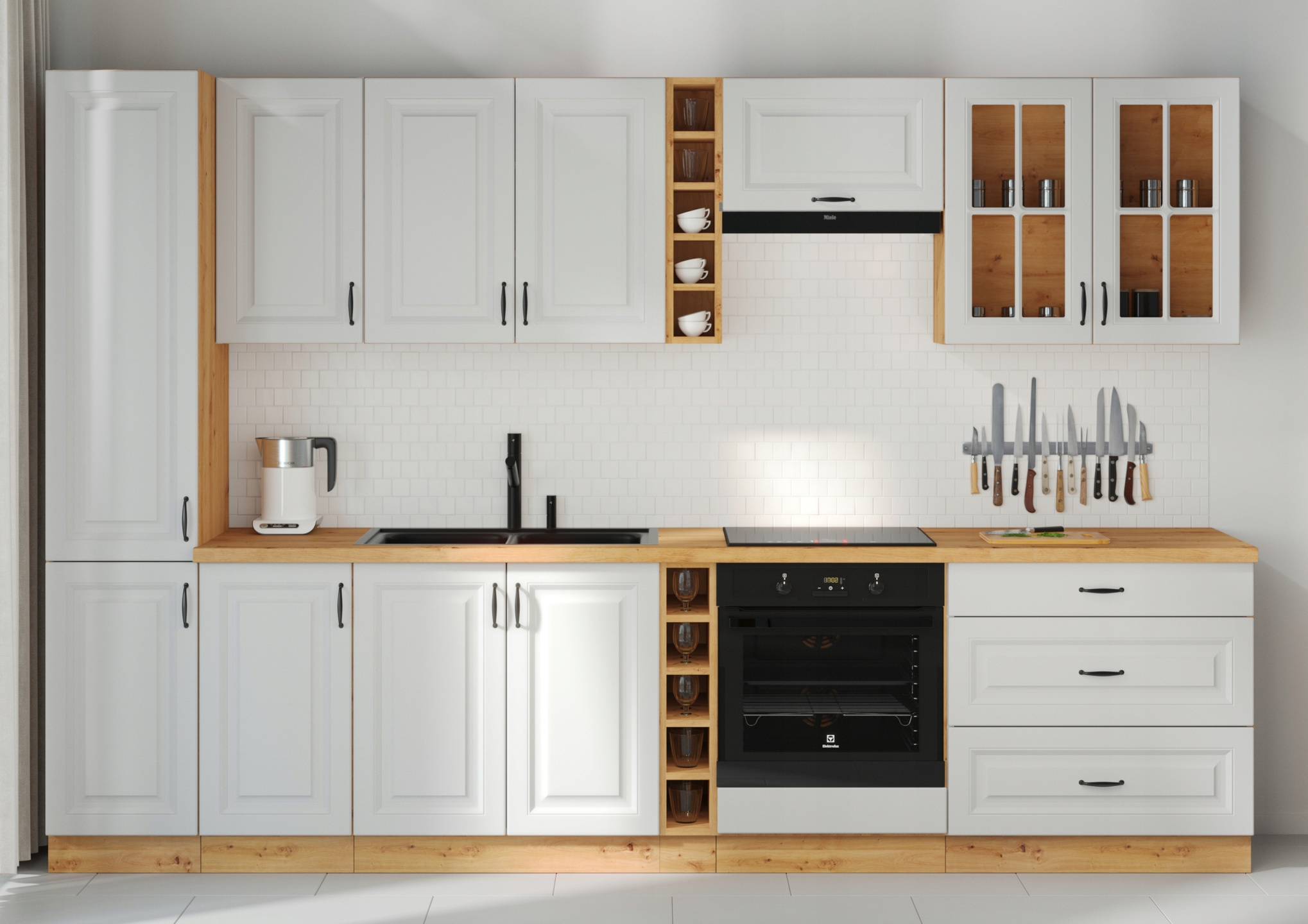 * biały mat + dąb artisan