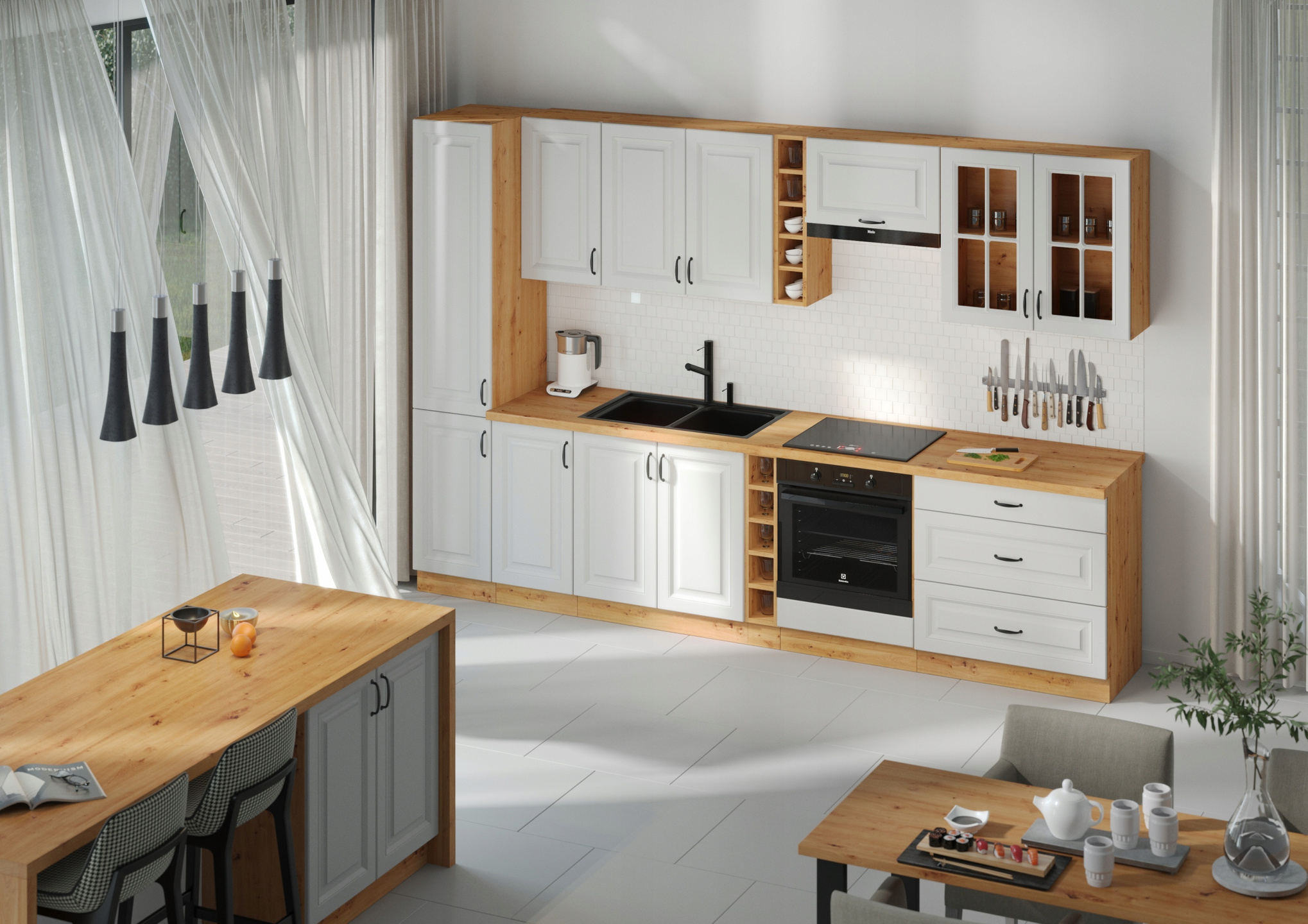 - płyta MDF o grubości 16mm w kolorze biały mat, frez STILO