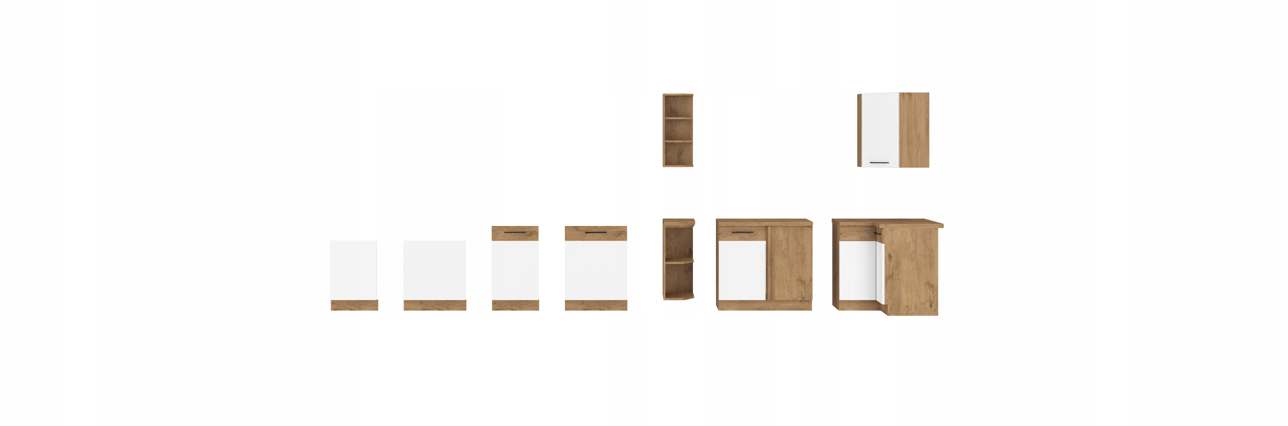 - wykonany z płyty laminowanej o grubości 16mm w kolorze dąb lancelot / MDF o grubości 16mm w kolorze biały połysk