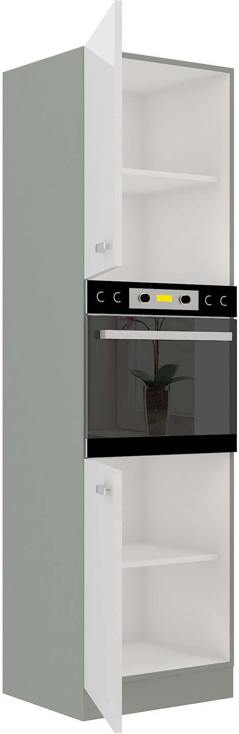 Szafka kuchenna wysoka, słupek pod zabudowę piekarnika 60 DP-210 2F BB BIAŁY POŁYSK, SZARY PLATYNOWY, Meble Kuchenne BIANCA