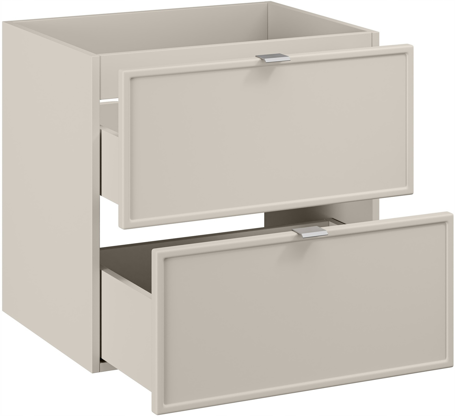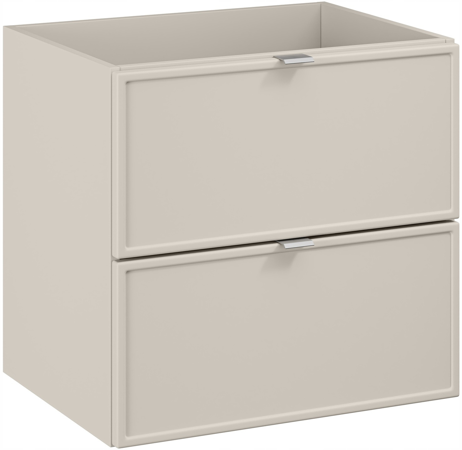 Doskonale wpisuje się w nowoczesne i klasyczne aranżacje łazienkowe. Mebel został starannie wykończony w subtelnym odcieniu kaszmiru, nadając wnętrzu łagodny, harmonijny charakter. Charakterystyczne fronty z frezowaną ramką dodają mu wyrafinowanego stylu. Uchwyty w trzech kolorach - złoty połysk, chrom połysk oraz czarny mat - nadają stylowy wygląd.