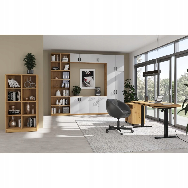 - wykonany z płyty laminowanej o grubości 18mm w kolorze dąb artisan