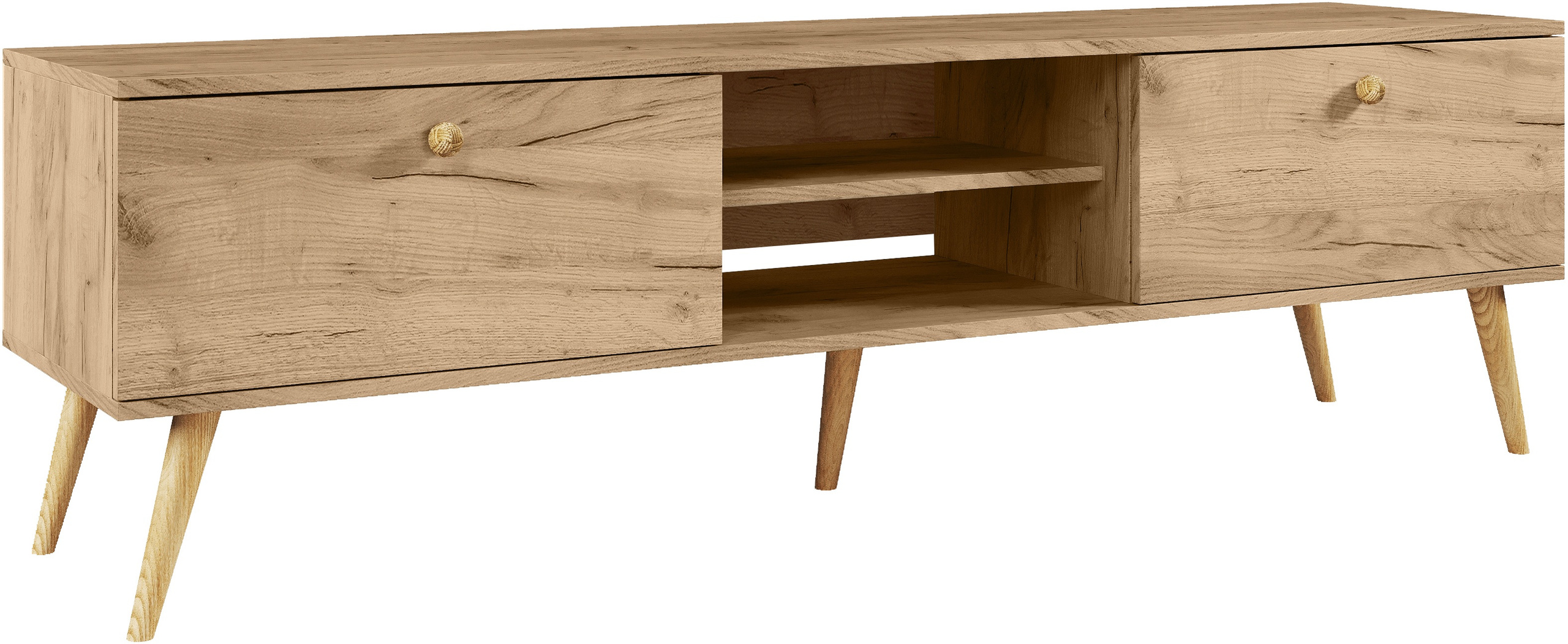 Szafka RTV BOHO z szufladami, drewniane nogi DĄB CRAFT ZŁOTY