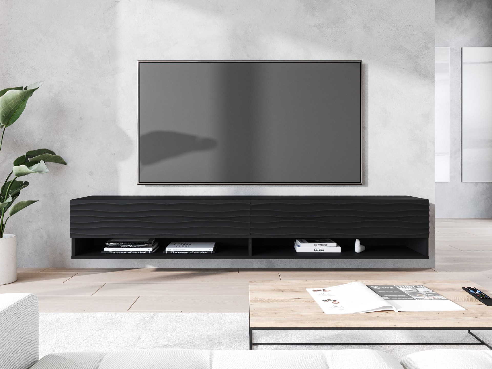 Szafka RTV Lowboard A 180 cm Czarny Grafit Fala MDF: