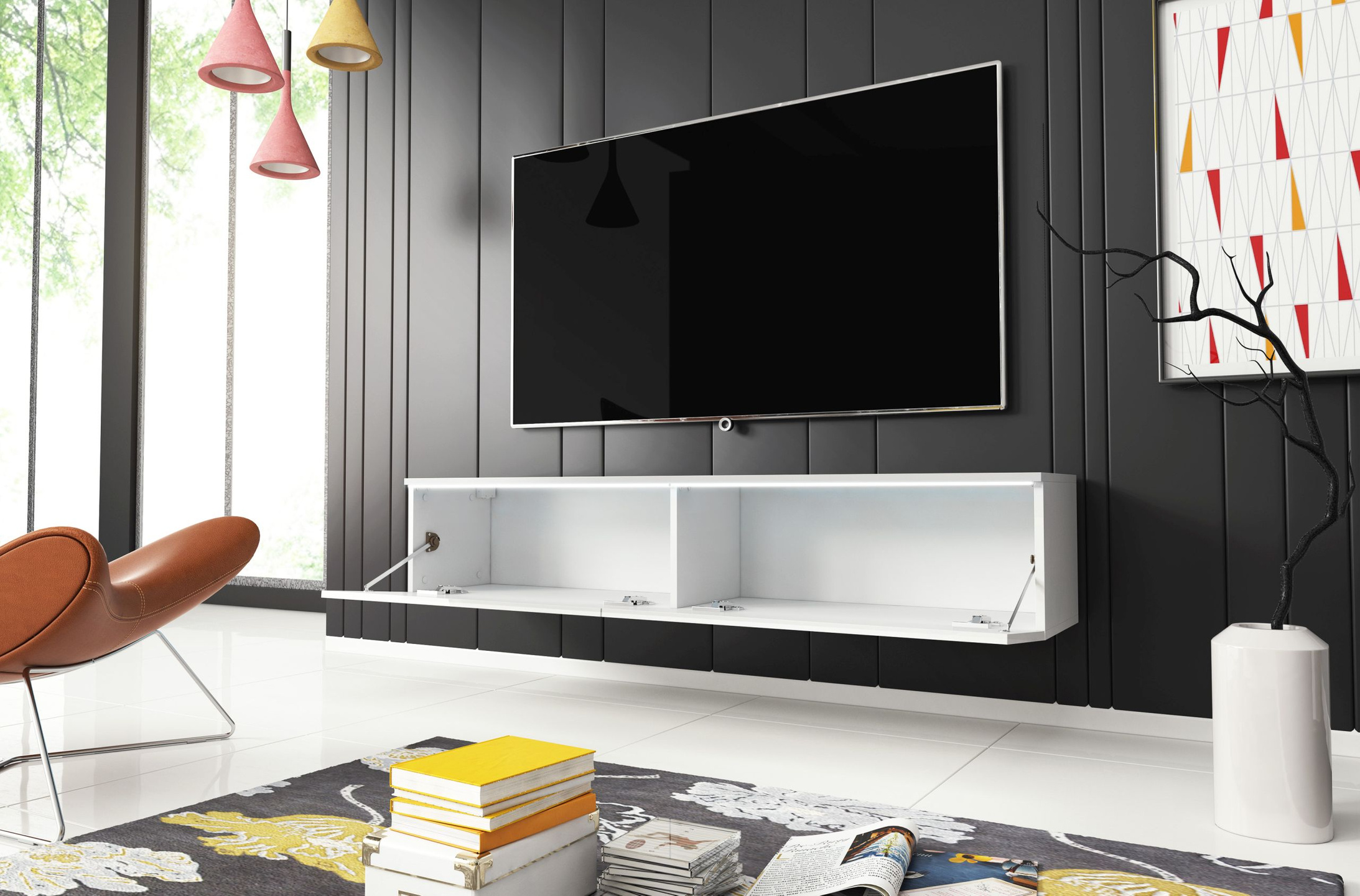 Szafka RTV Lowboard D 140cm BIAŁY / BIAŁY POŁYSK