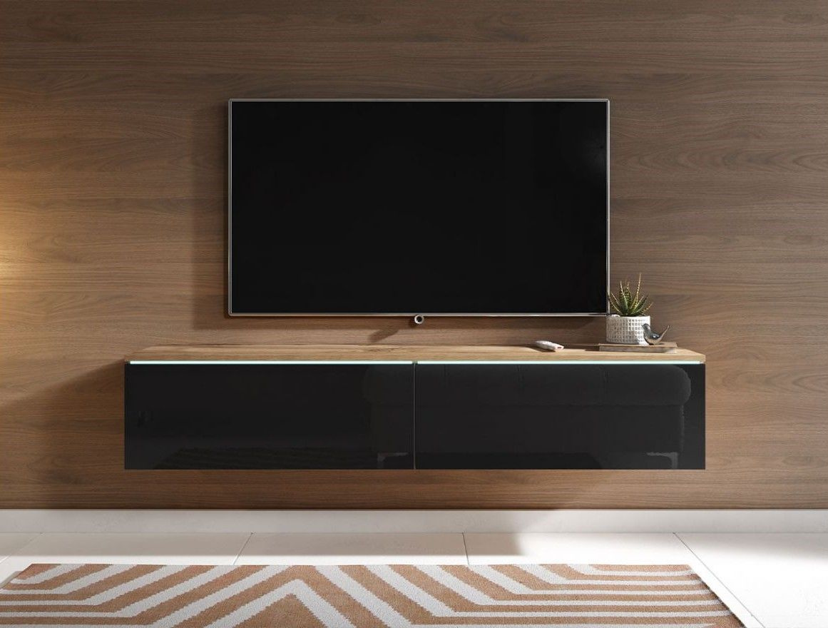 Szafka RTV Lowboard D 140cm DĄB WOTAN / CZARNY POŁYSK
