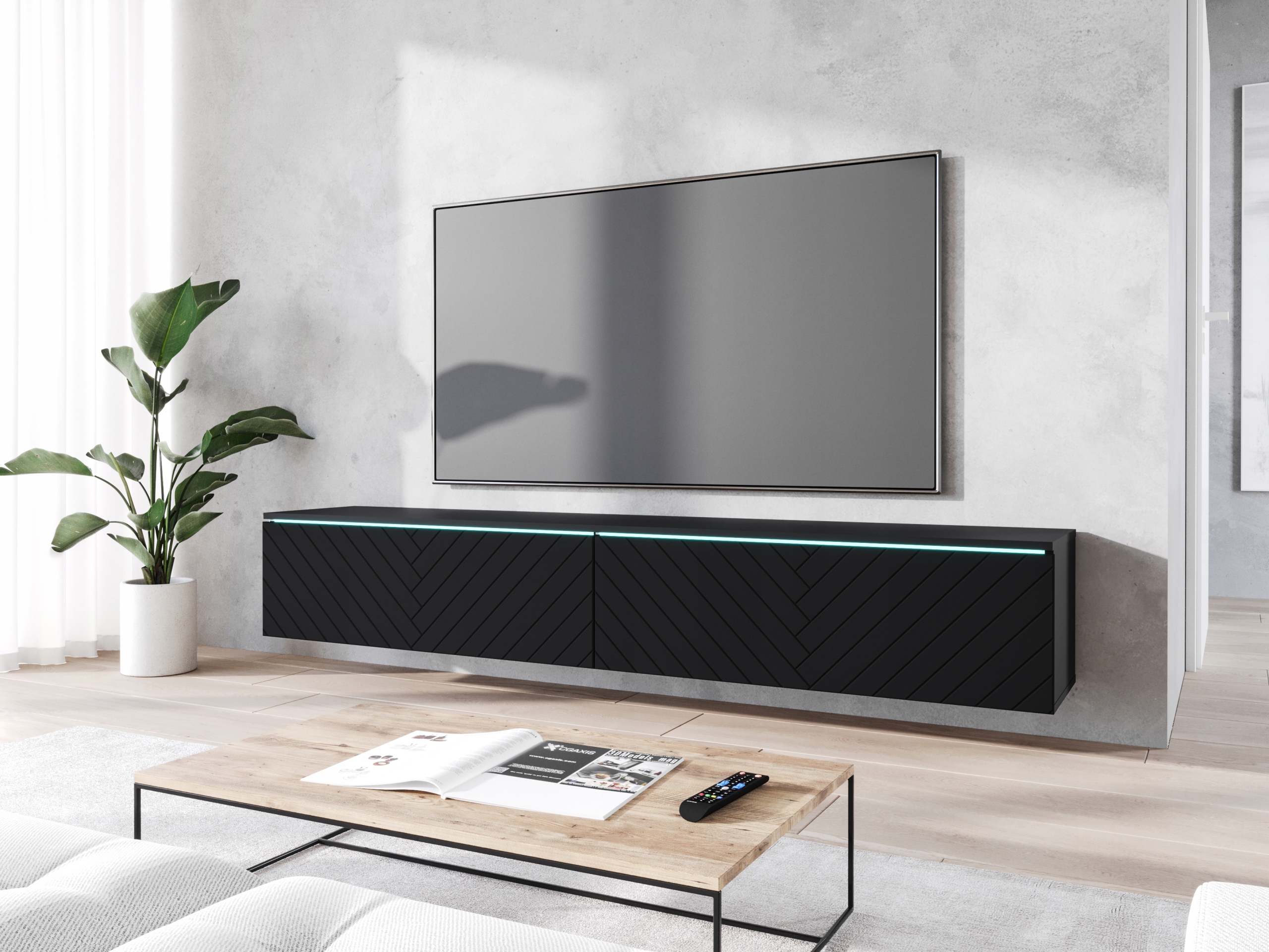 Szafka RTV Lowboard D 180cm Czarny Grafit/Fala MDF: