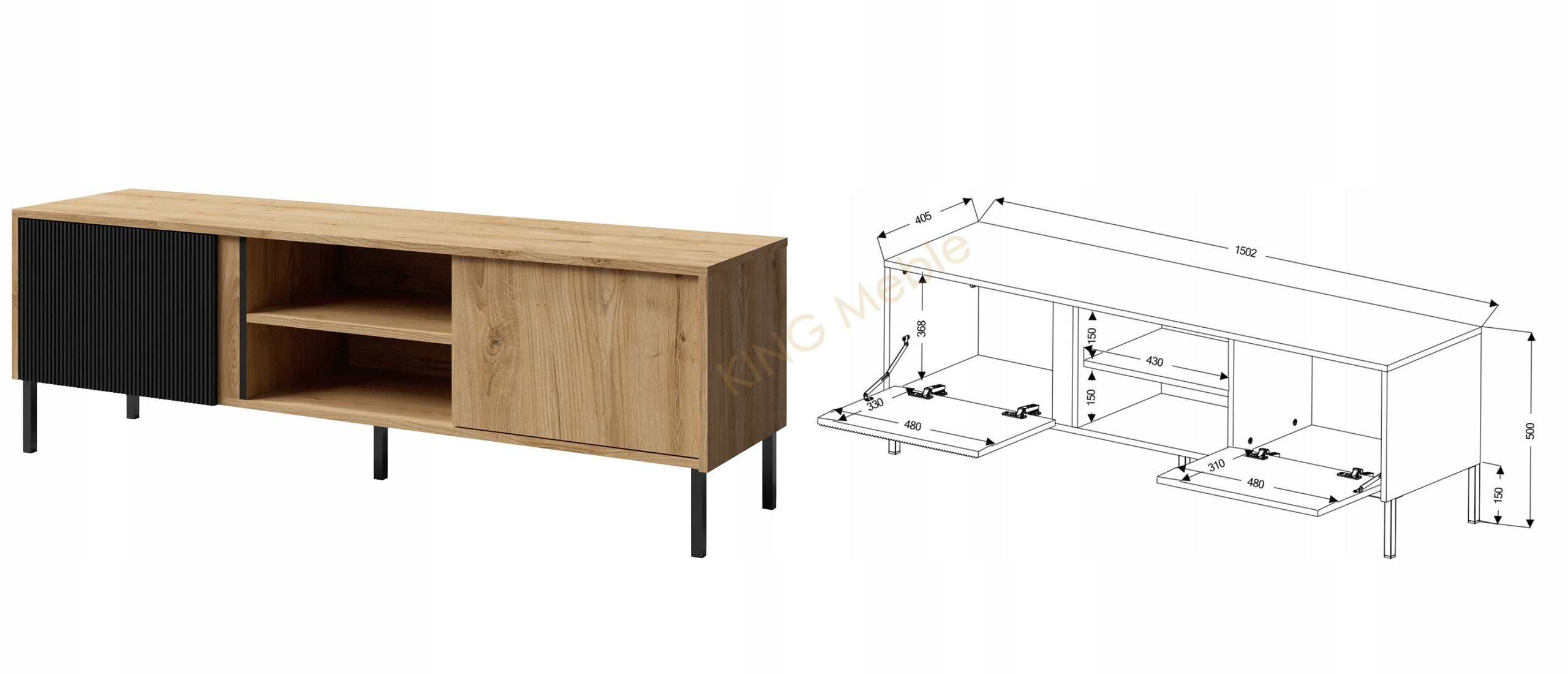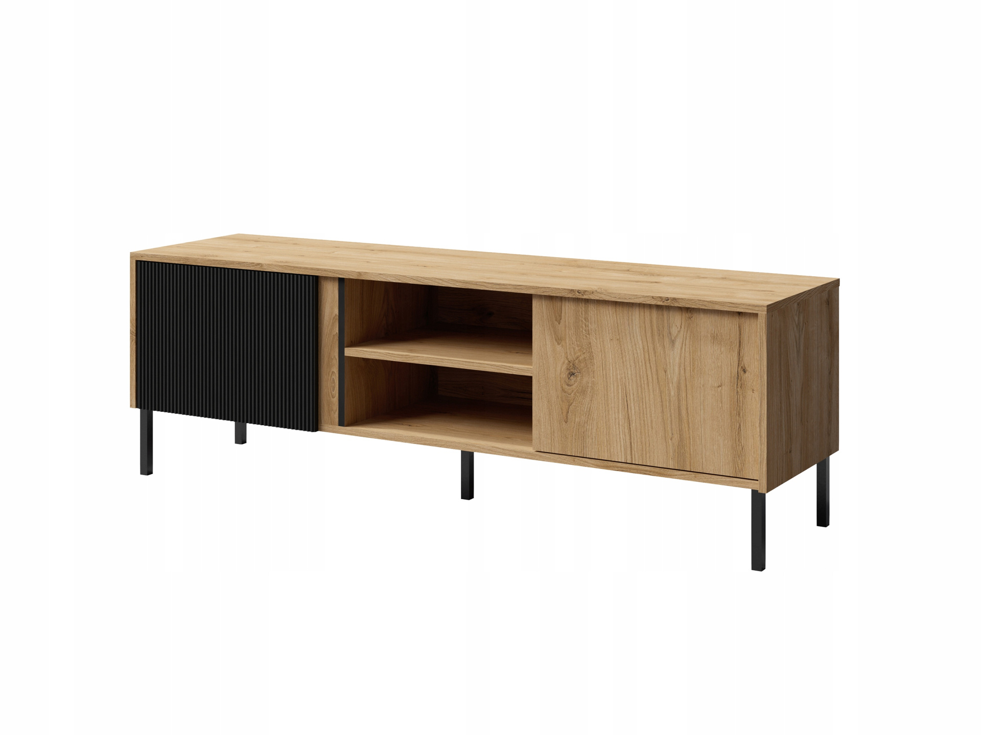 Szafka RTV MIA 6, Stolik RTV 150cm, Meble do Salonu, Dąb Odwieczny/Czarny