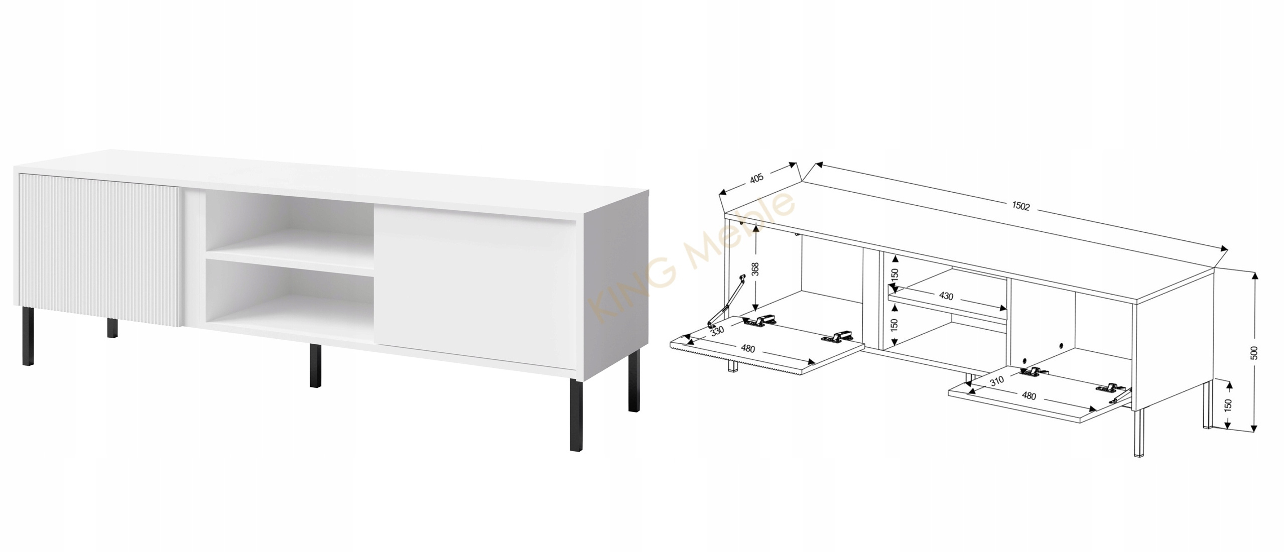 Szafka RTV MIA 6, Stolik RTV 150cm, Meble do Salonu MIA, MDF Biała