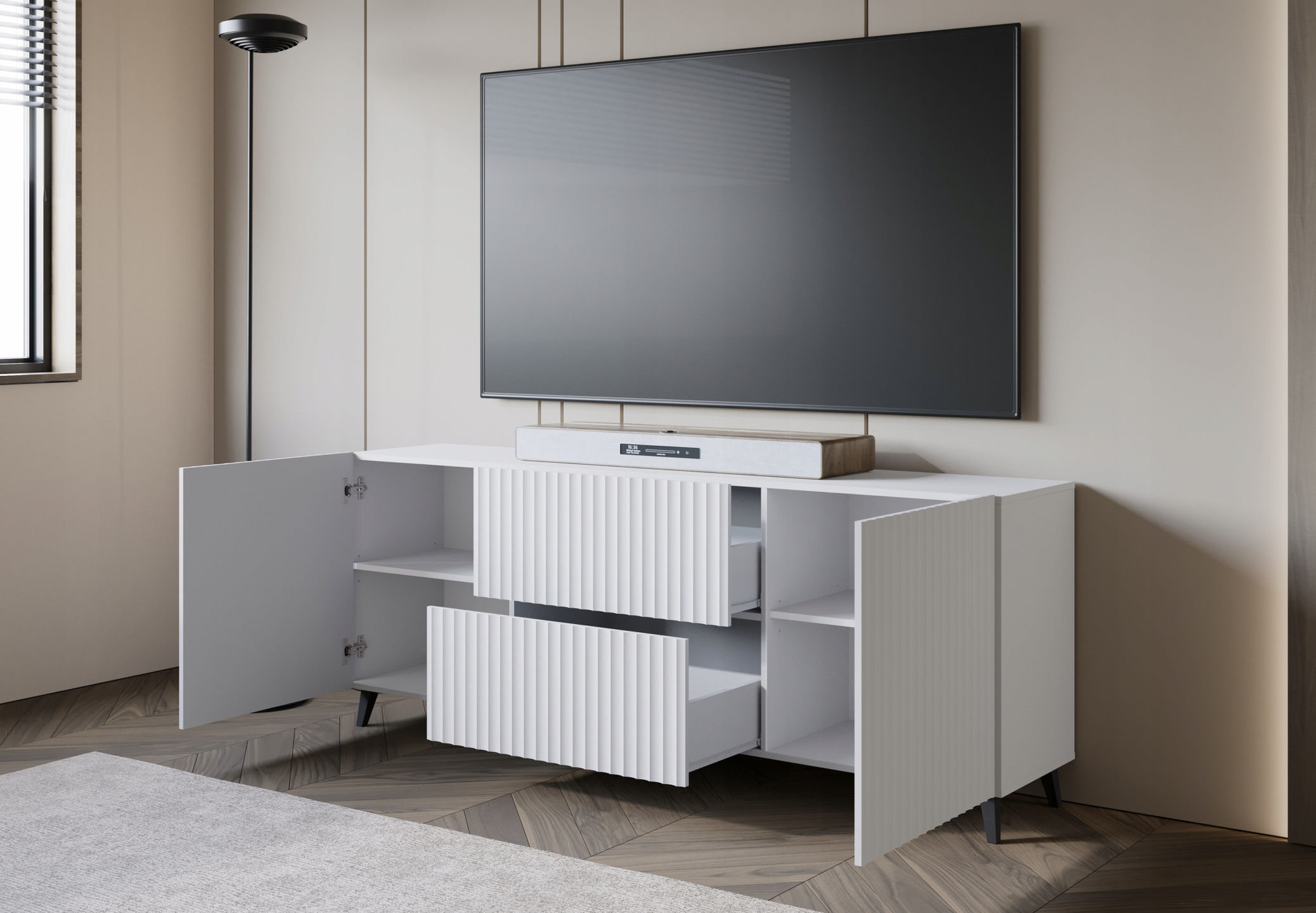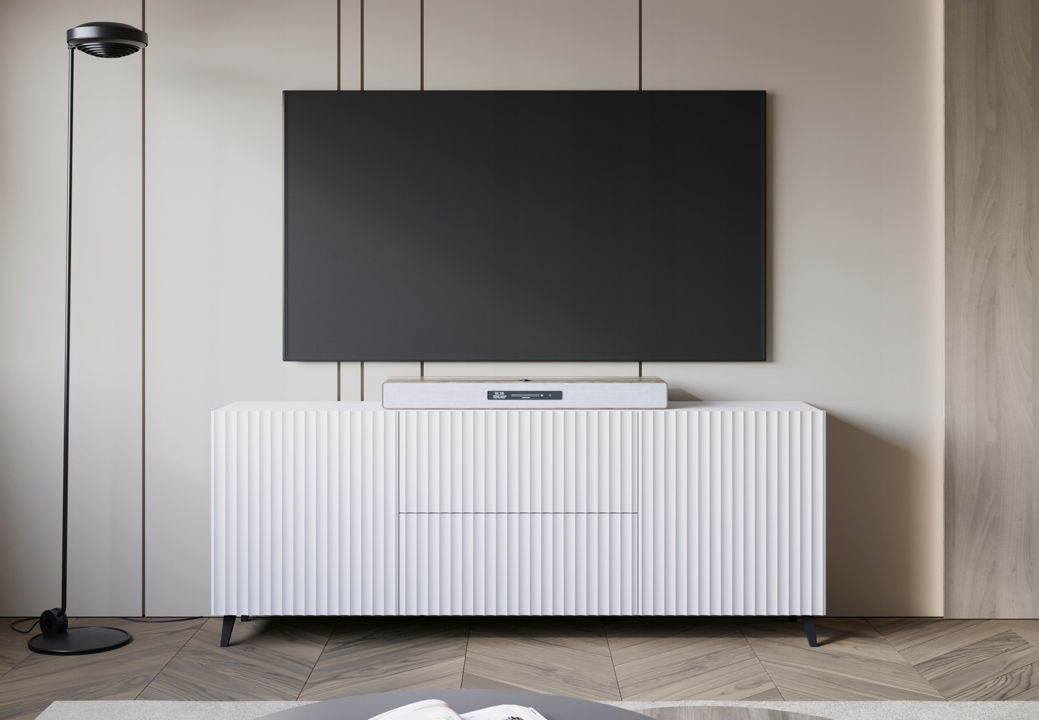 Szafka RTV Phuket 181 Biały/Ryfle Szerokie: