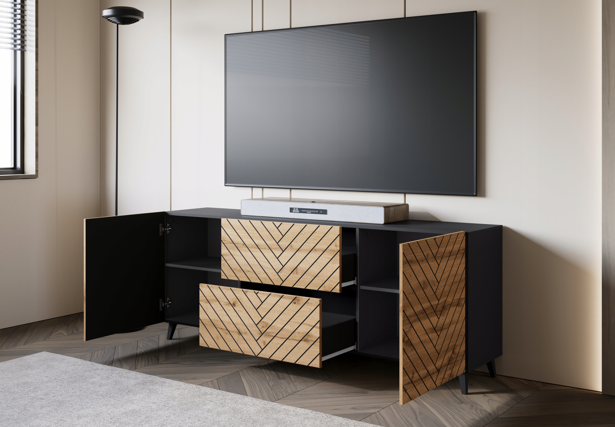 Szafka RTV Phuket 181 Czarny Grafit/Dąb Wotan Jodełka: