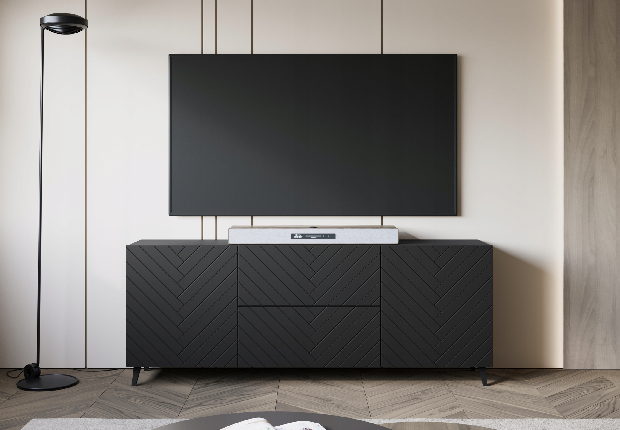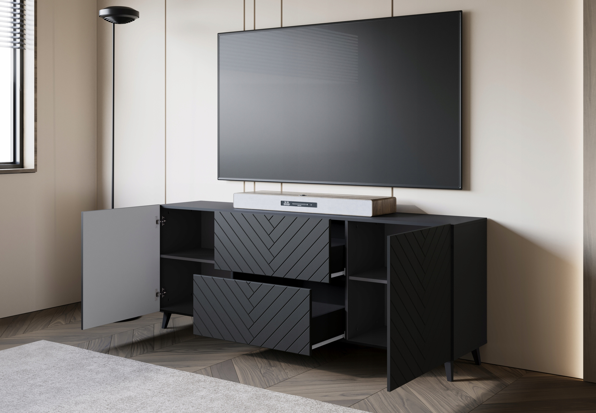 Szafka RTV Phuket 181 Czarny Grafit Jodełka: