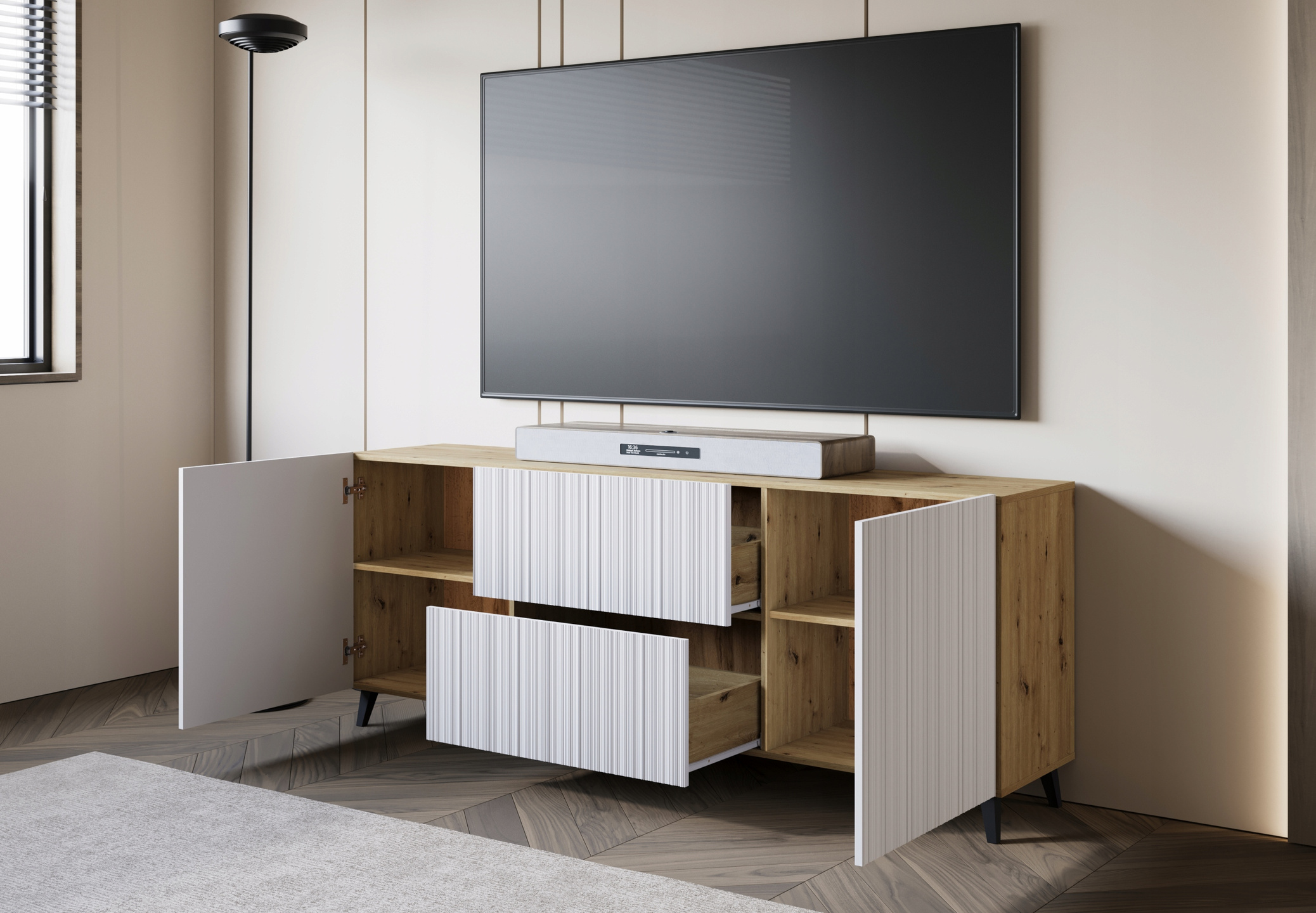 Szafka RTV PHUKET 181 Dąb Artisan / Białe Drobne Ryfle