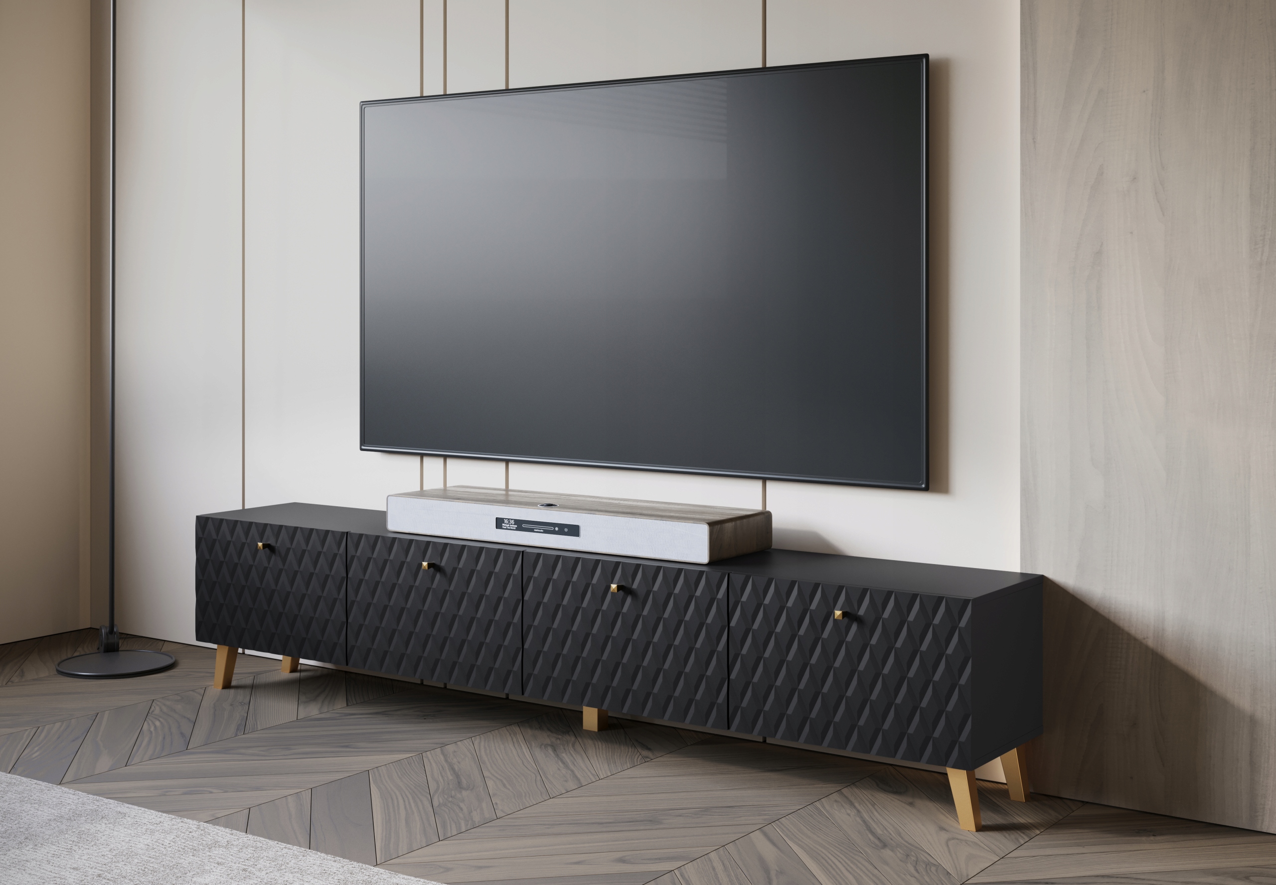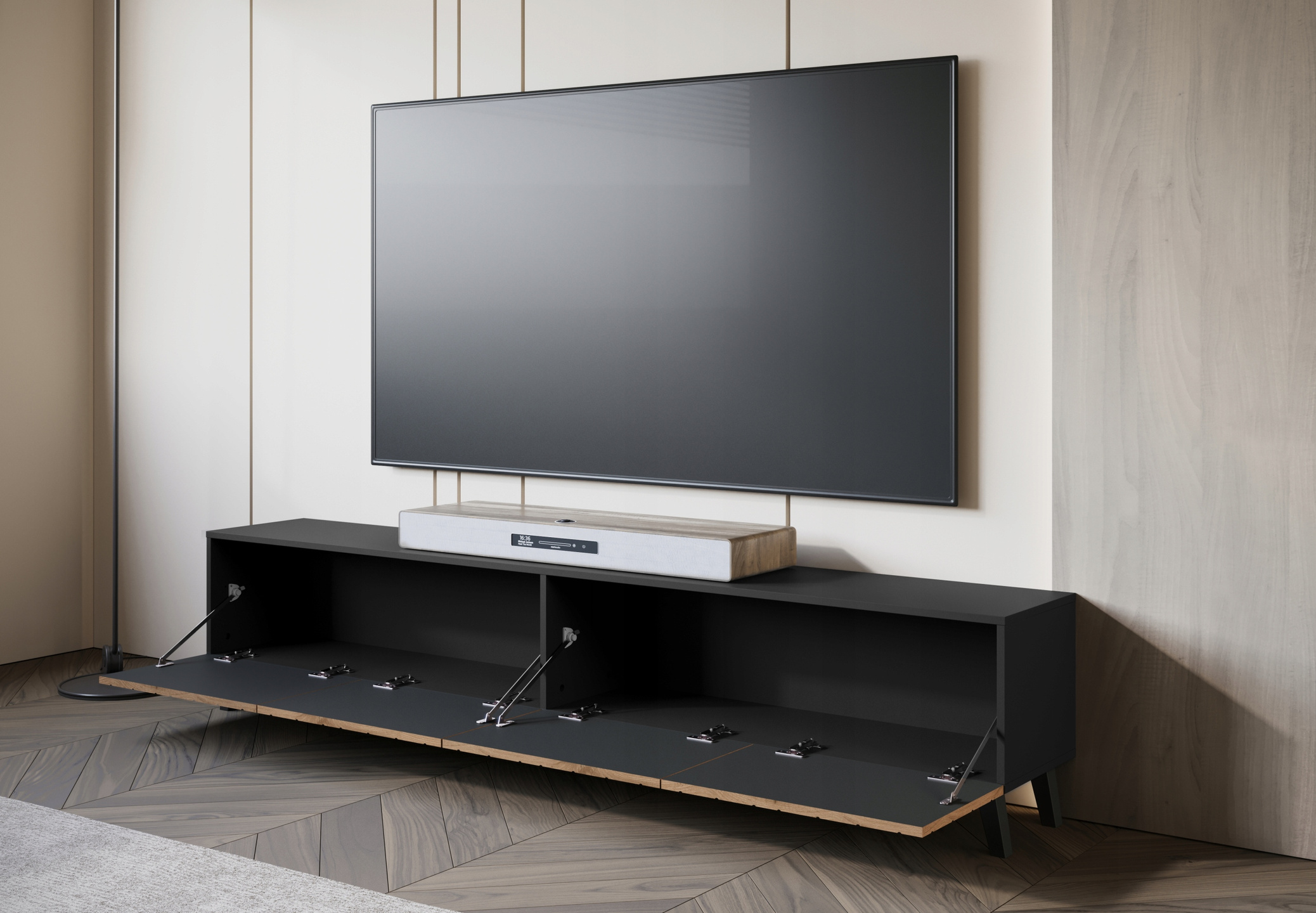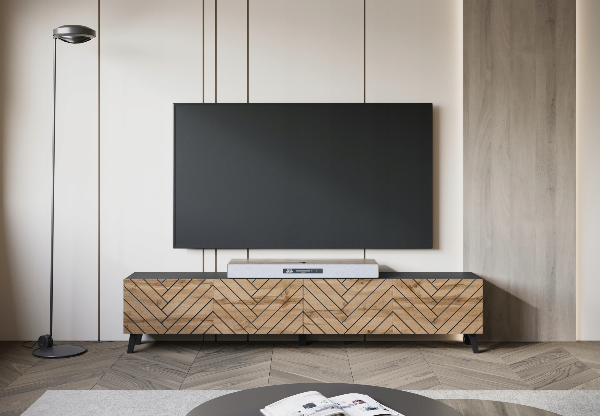 Szafka RTV Phuket 190 Czarny Grafit/Dąb Wotan Jodełka:
