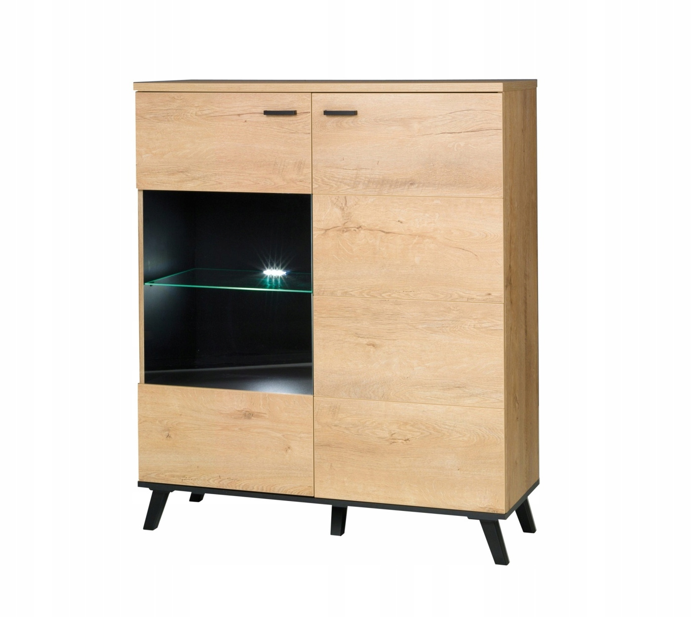 Witryna JOHN 4, Witryna 101cm, LED, Meble do Salonu JOHN, Dąb Lefkas/Czarny