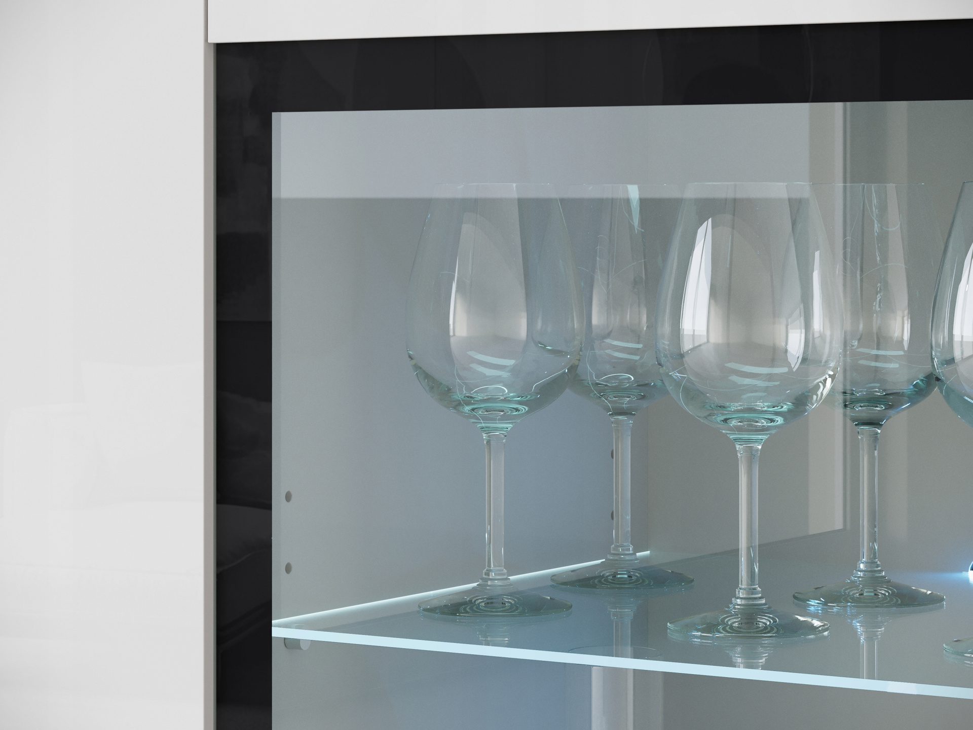 Szklane elementy można podświetlić oświetleniem LED co jeszcze bardziej uatrakcyjni witrynę i stworzy idealny klimat w pomieszczeniu.