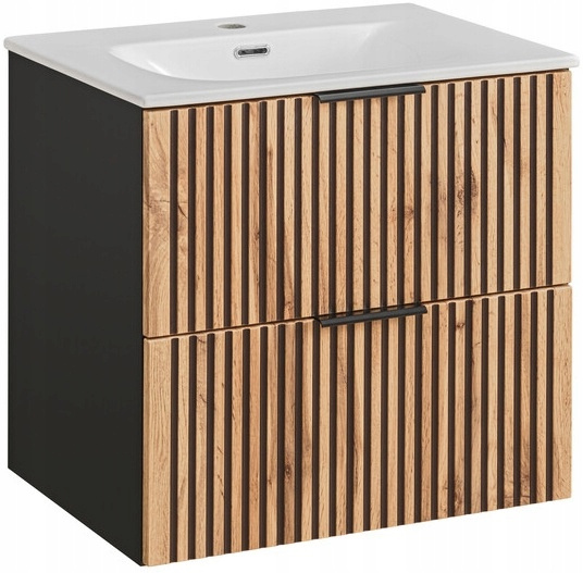 Zestaw mebli 60cm z umywalką, Meble łazienkowe XILO Dąb Wotan/Szary Kosmos