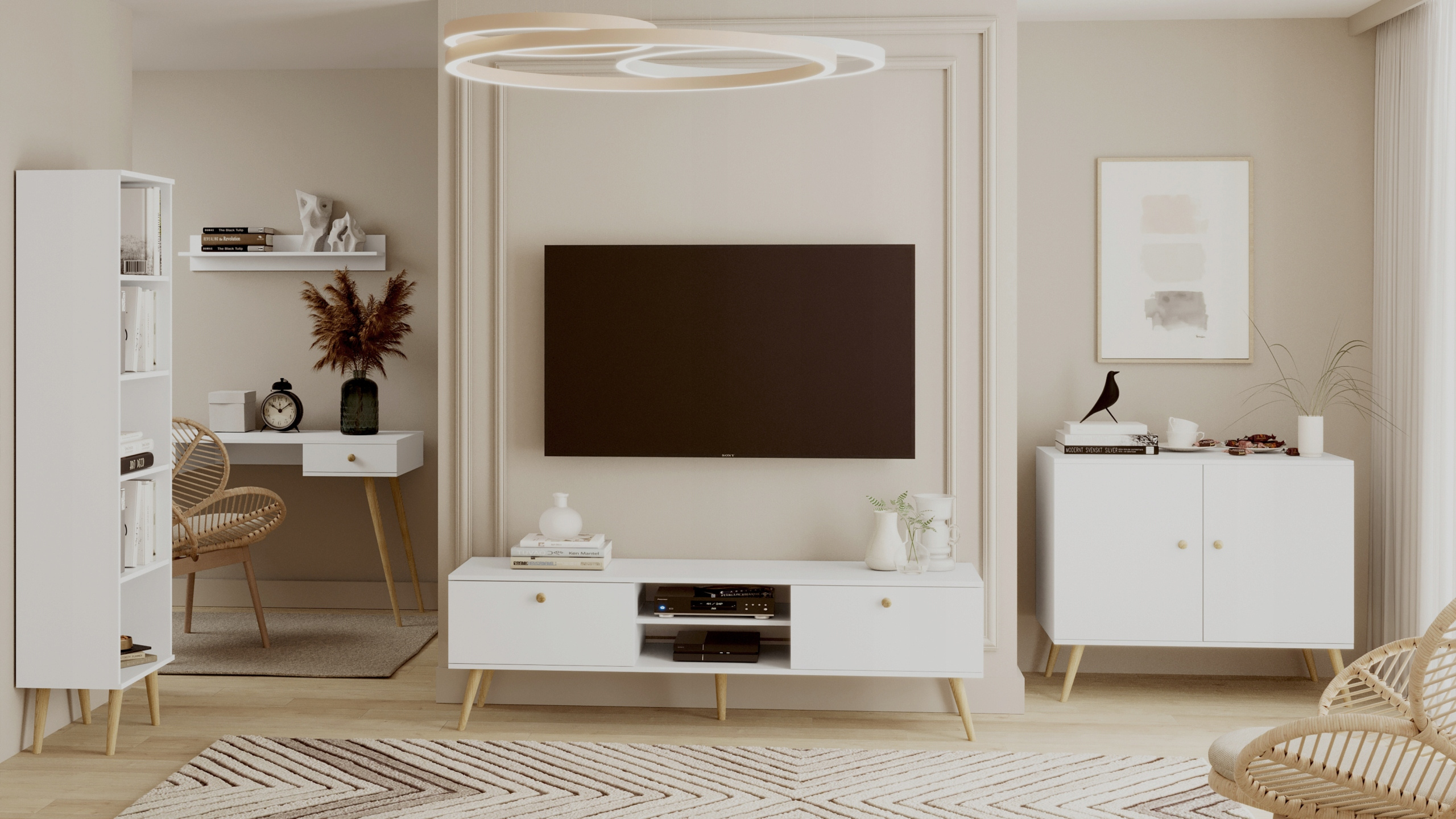 Aukcja dotyczy zestawu pięciu mebli BOHO w kolorze Białym: