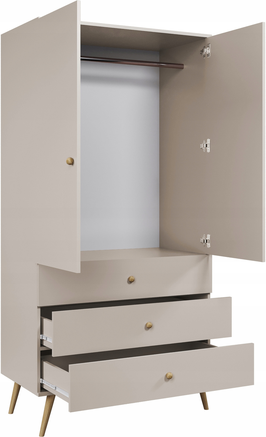 - nóżki wykonane z litego drewna, sztywno zamontowane do konstrukcji mebla