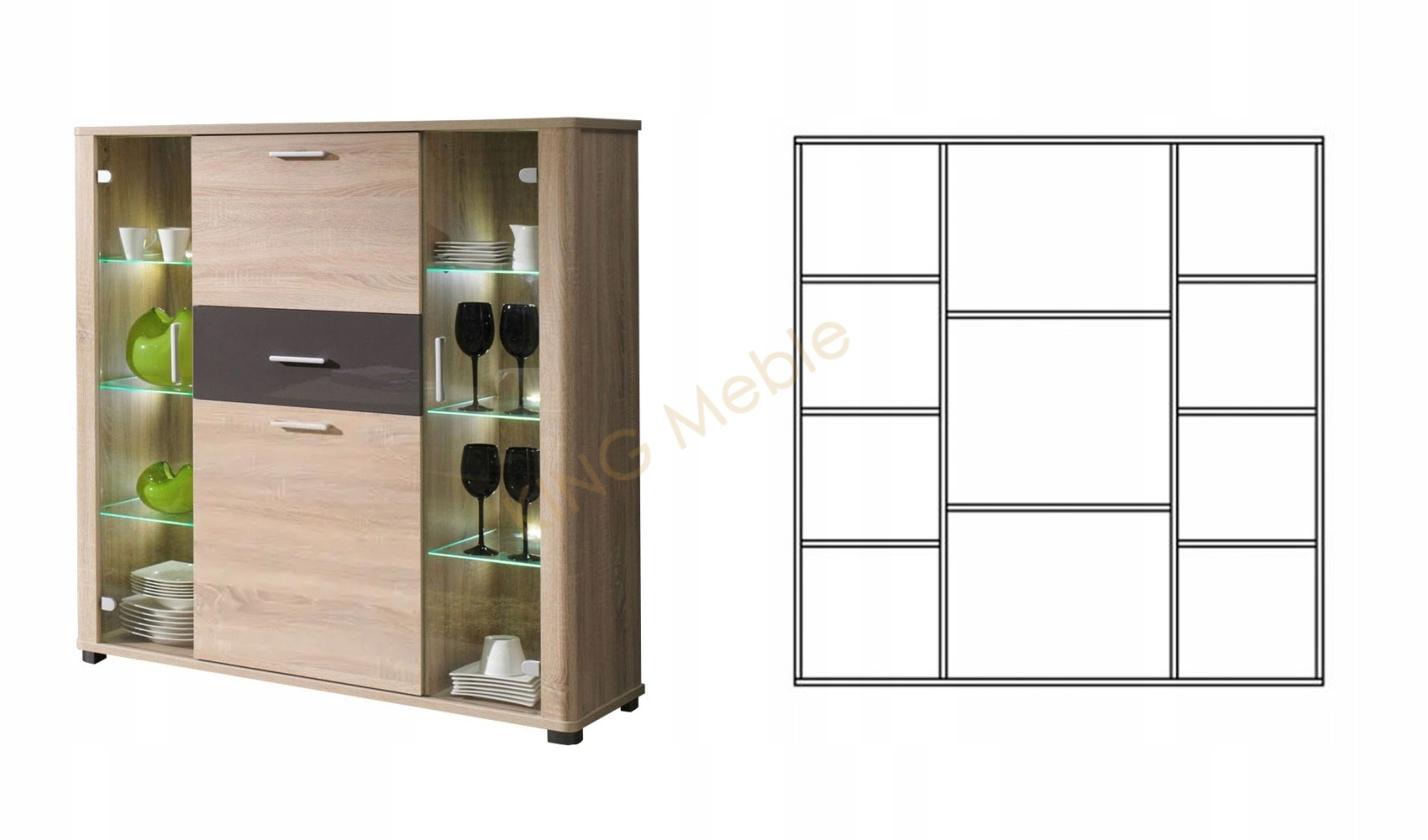 - aukcja dotyczy zestawu mebli FILL w kolorze dąb sonoma/grafit połysk
