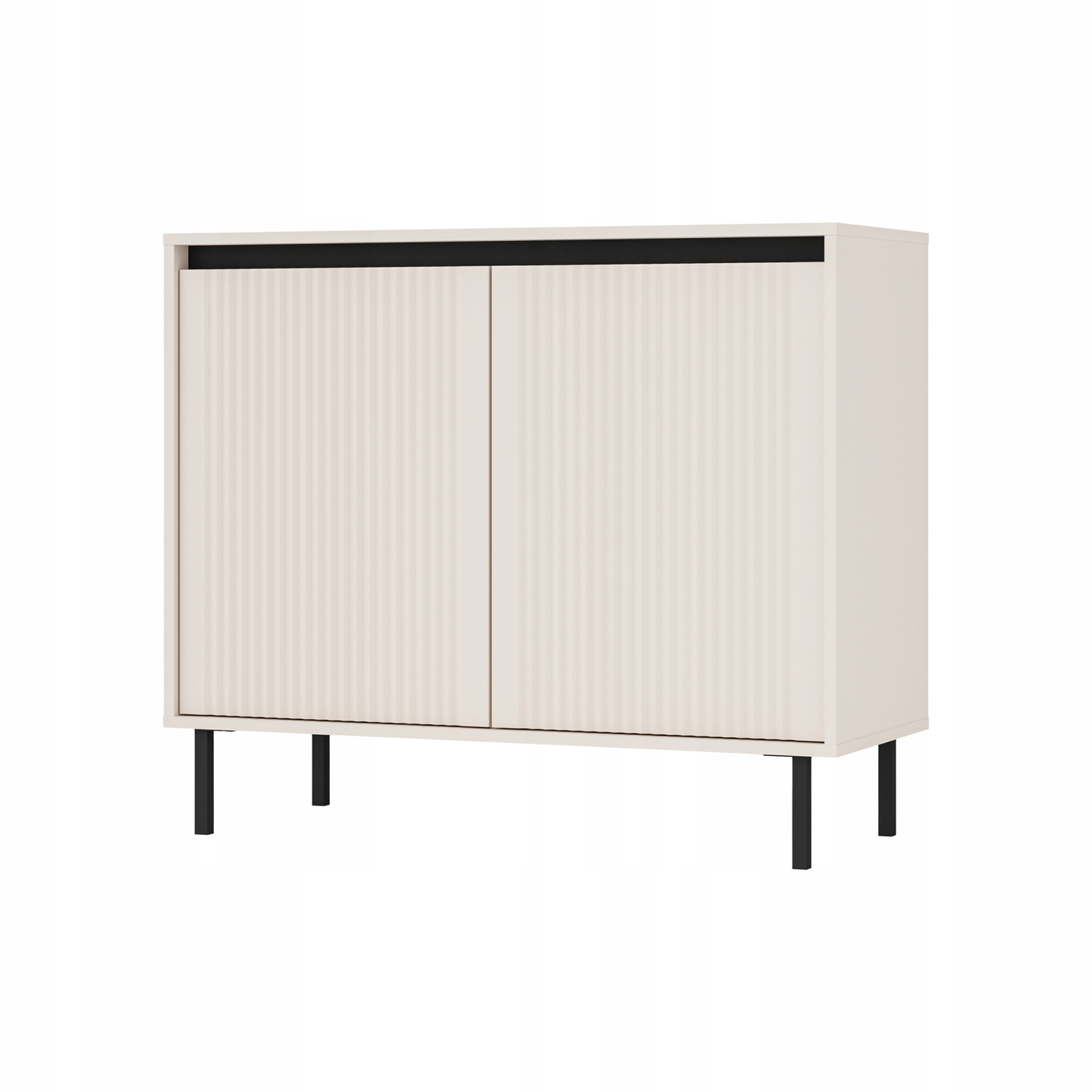 • Front wykonany z płyty MDF o grubości 16mm w kolorze beż piaskowy (lamel) / płyty laminowanej o grubości 16mm w kolorze czarnym