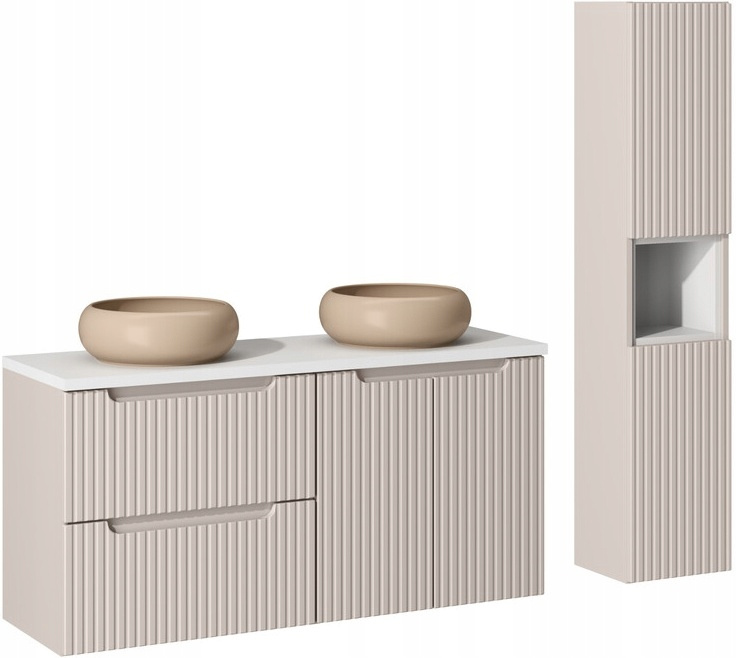 Zestaw meblowy 120cm, blat, umywalki, Meble łazienkowe NOVA Kaszmir / Biały