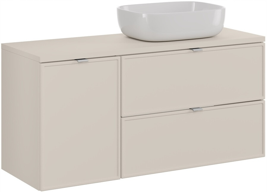 Idealne rozwiązanie do Twojej łazienki, zapewnia nie tylko elegancki wygląd, ale także funkcjonalność. Kolor zestawu w odcieniu Kaszmirowy Mat harmonijnie komponuje się z różnymi stylami aranżacji łazienki. Frezowany wzór frontów dodaje uroku i wyrafinowania. Wybierz uchwyt w kolorze złotym połysku, chrom połysku lub czarnym mat - wszystkie są w komplecie. Wszystkie elementy wykonane są z wysokiej jakości materiałów, co gwarantuje trwałość i elegancję na lata.