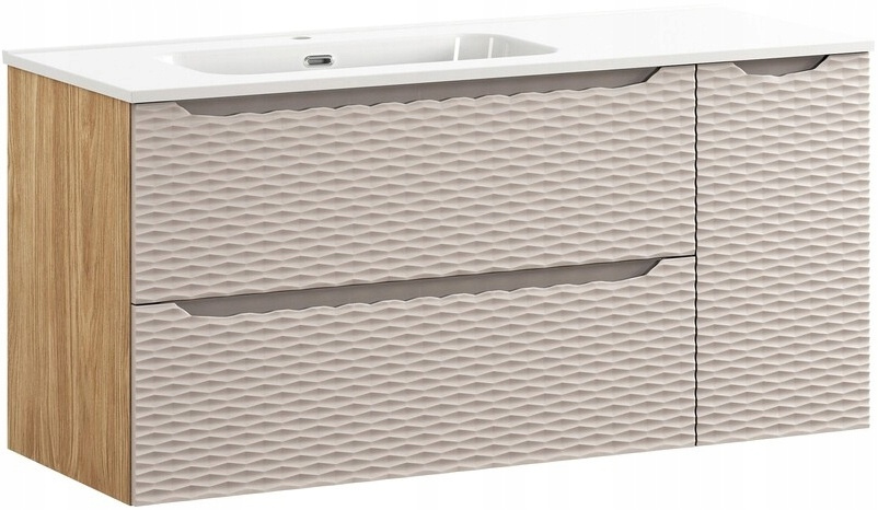 Zestaw meblowy 120cm z umywalką, Meble łazienkowe OCEAN Beż/Dąb Olejowany