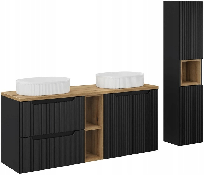 Zestaw meblowy 140cm, blat, umywalki, słupek, Meble łazienkowe NOVA Czarny