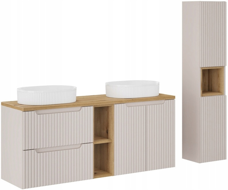 Zestaw meblowy 140cm blat umywalki słupek Meble łazienkowe NOVA Kaszmir/Dąb