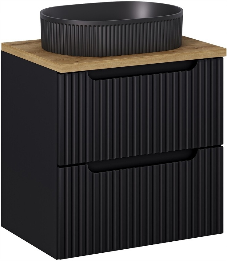 Zestaw meblowy 60cm z blatem, umywalka, Meble łazienkowe NOVA Czarny / Dąb