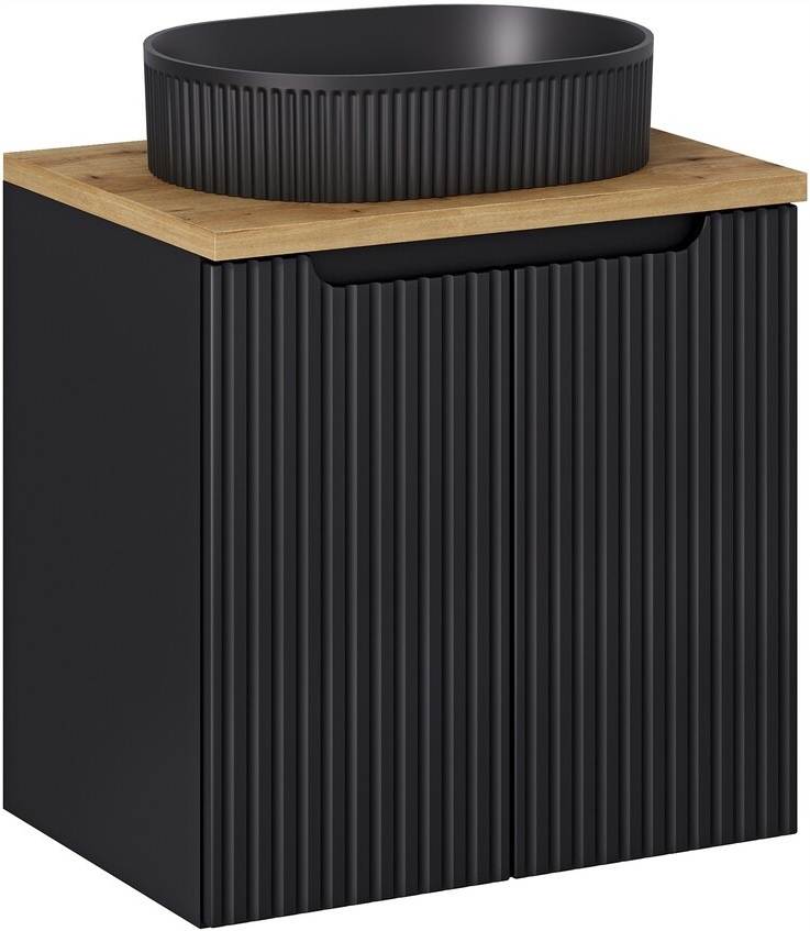Zestaw meblowy 60cm z blatem, umywalka, Meble łazienkowe NOVA Czarny / Dąb