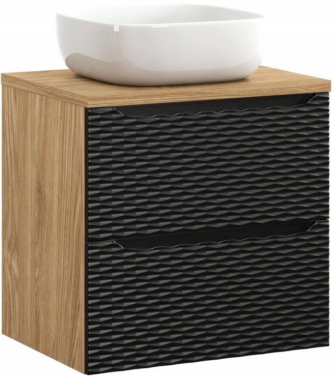 Zestaw meblowy 60cm z blatem, umywalka, Meble łazienkowe OCEAN Czarny / Dąb