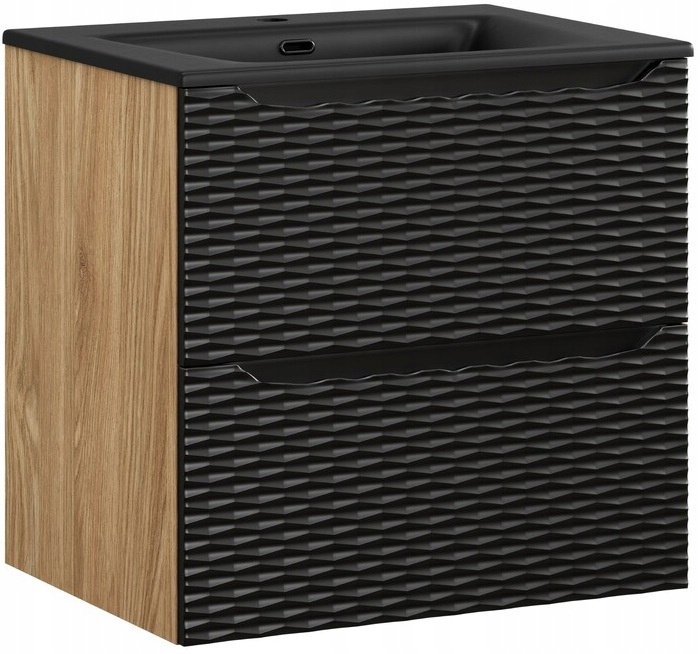 Zestaw meblowy 60cm z umywalką, Meble łazienkowe OCEAN Czarny/Dąb Olejowany