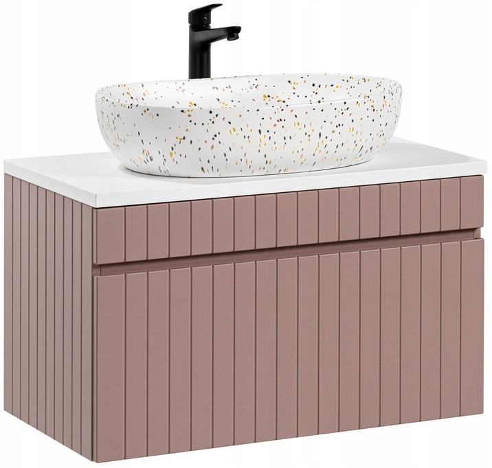 Zestaw meblowy 80cm z blatem i umywalką, Meble łazienkowe ICONIC Róż