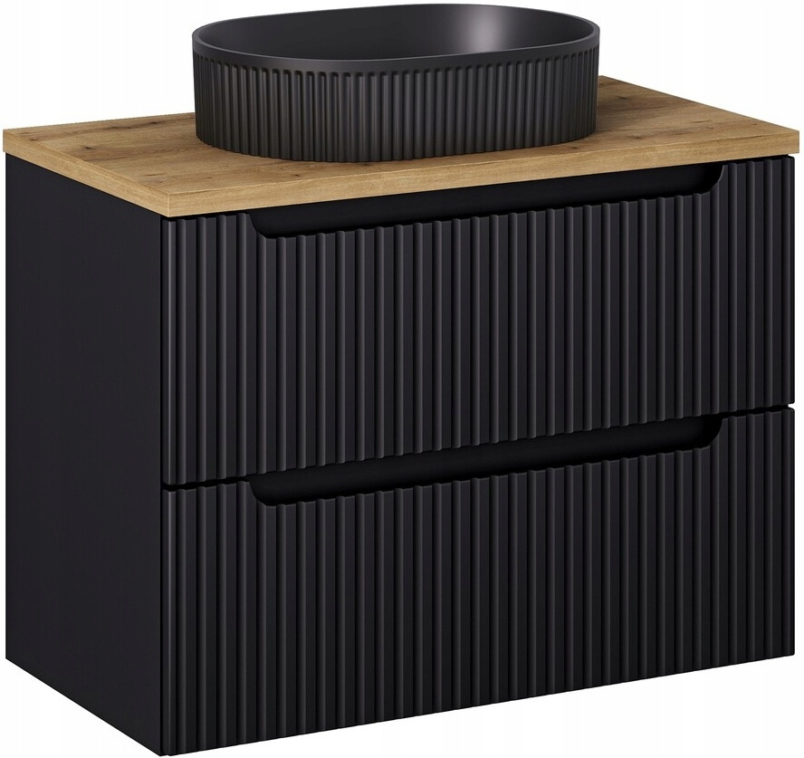 Zestaw meblowy 80cm z blatem, umywalka, Meble łazienkowe NOVA Czarny / Dąb