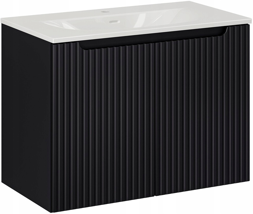 Zestaw meblowy 80cm z umywalką, drzwi, Meble łazienkowe NOVA Czarny Mat