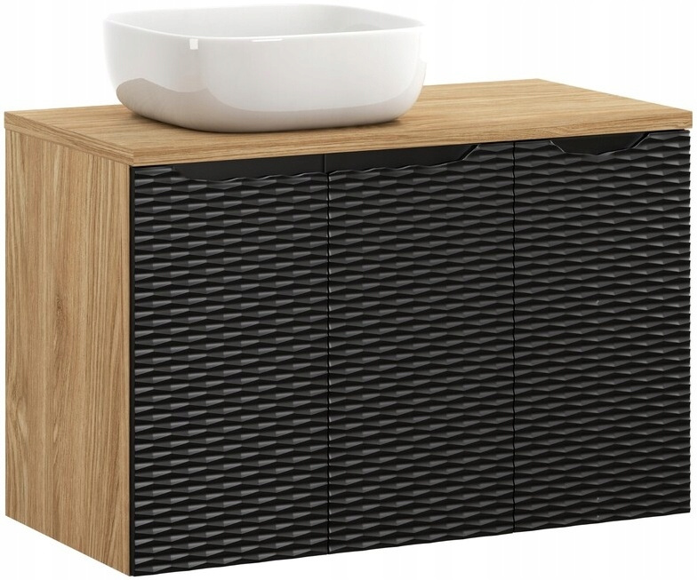 Zestaw meblowy 90cm z blatem, umywalka, Meble łazienkowe OCEAN Czarny / Dąb