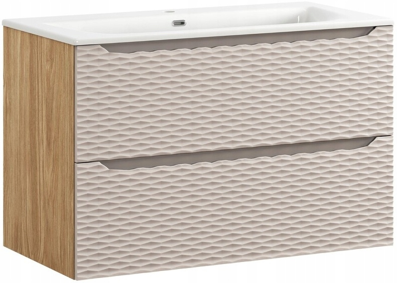Zestaw meblowy 90cm z umywalką, Meble łazienkowe OCEAN Beż / Dąb Olejowany