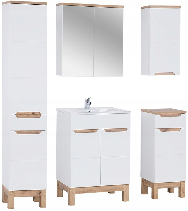 Zestaw meblowy z umywalką, Meble łazienkowe BALI Dąb Craft / Biały Połysk