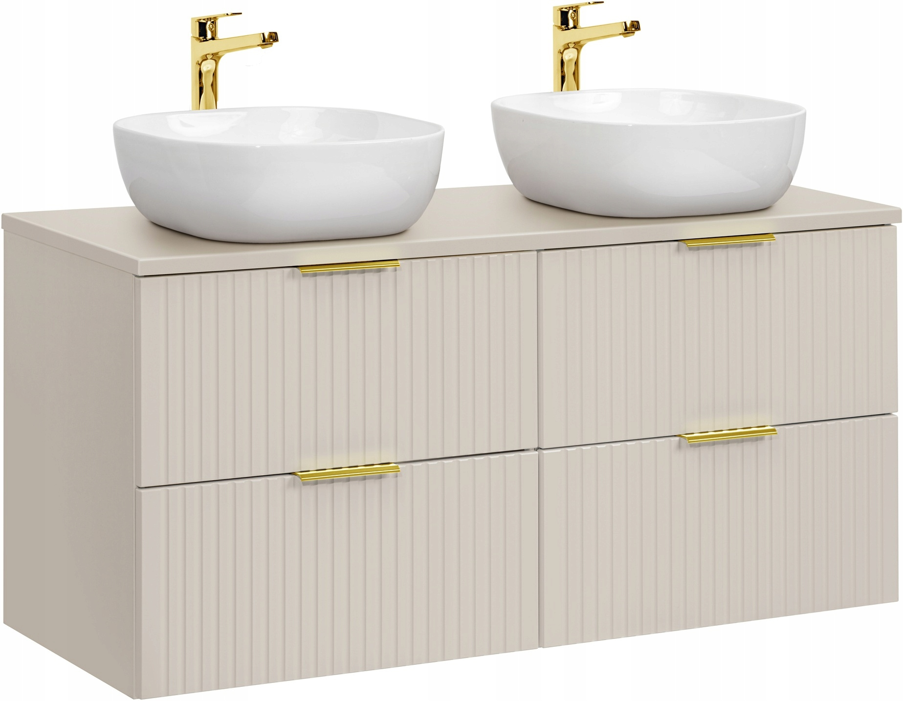 Meble łazienkowe Adel łączą elegancję i funkcjonalność. Pionowe, ryflowane fronty nadają meblom unikalny charakter i optycznie powiększają przestrzeń łazienki, a kaszmirowy kolor dodaje subtelnego ciepła, doskonale komponując się z różnorodnymi aranżacjami wnętrz.