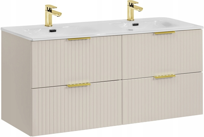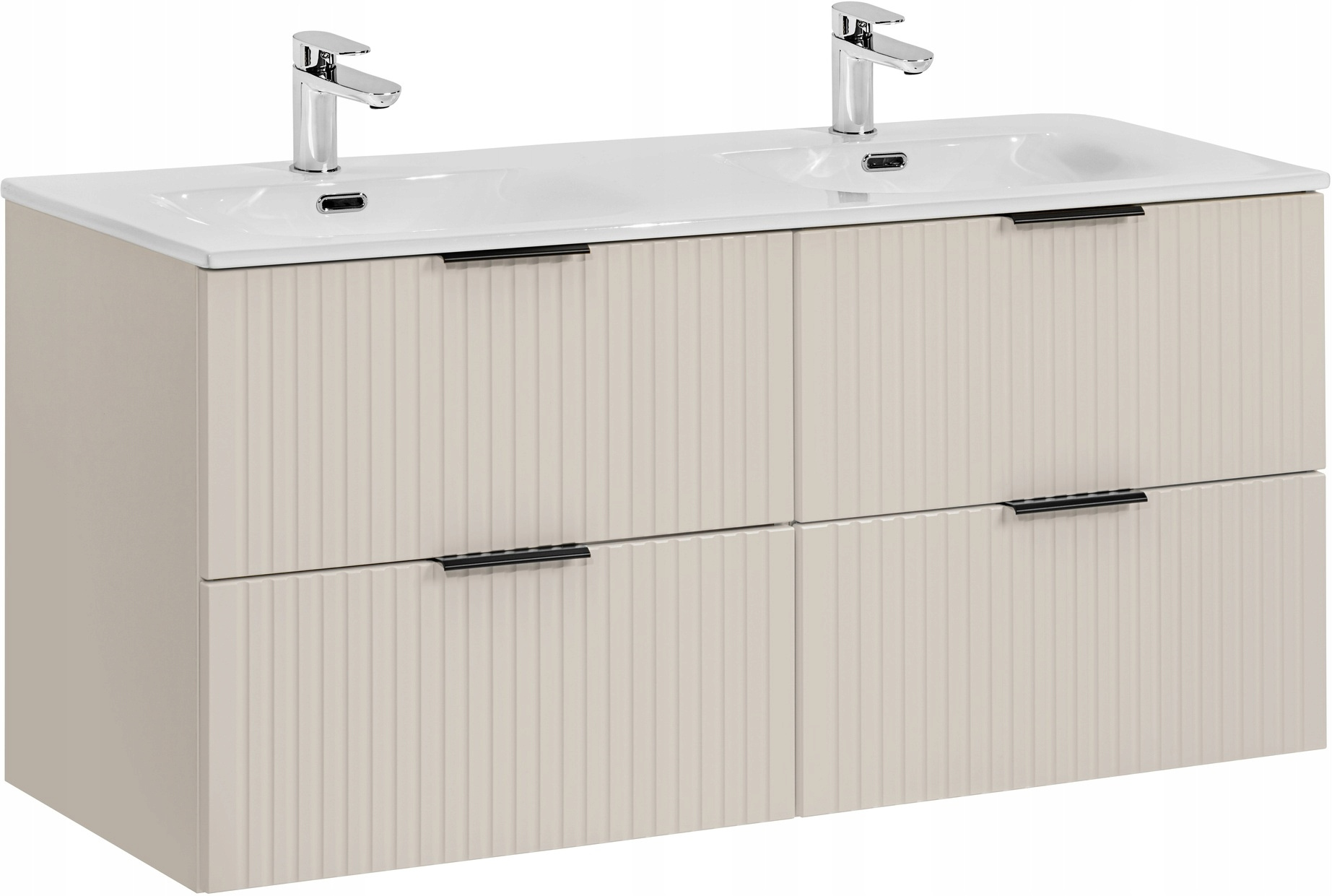 Meble łazienkowe Adel łączą elegancję i funkcjonalność. Pionowe, ryflowane fronty nadają meblom unikalny charakter i optycznie powiększają przestrzeń łazienki, a kaszmirowy kolor dodaje subtelnego ciepła, doskonale komponując się z różnorodnymi aranżacjami wnętrz.