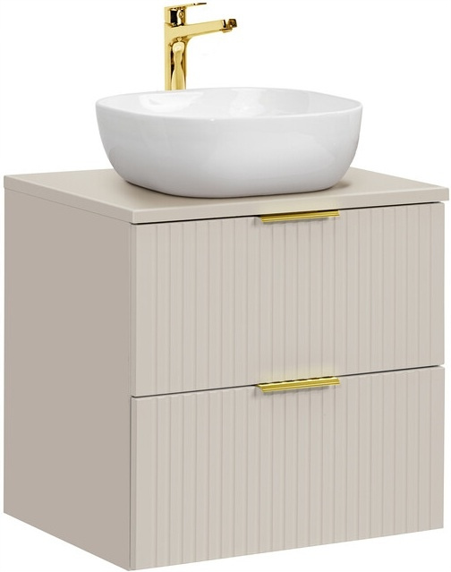 Meble łazienkowe Adel łączą elegancję i funkcjonalność. Pionowe, ryflowane fronty nadają meblom unikalny charakter i optycznie powiększają przestrzeń łazienki, a kaszmirowy kolor dodaje subtelnego ciepła, doskonale komponując się z różnorodnymi aranżacjami wnętrz.